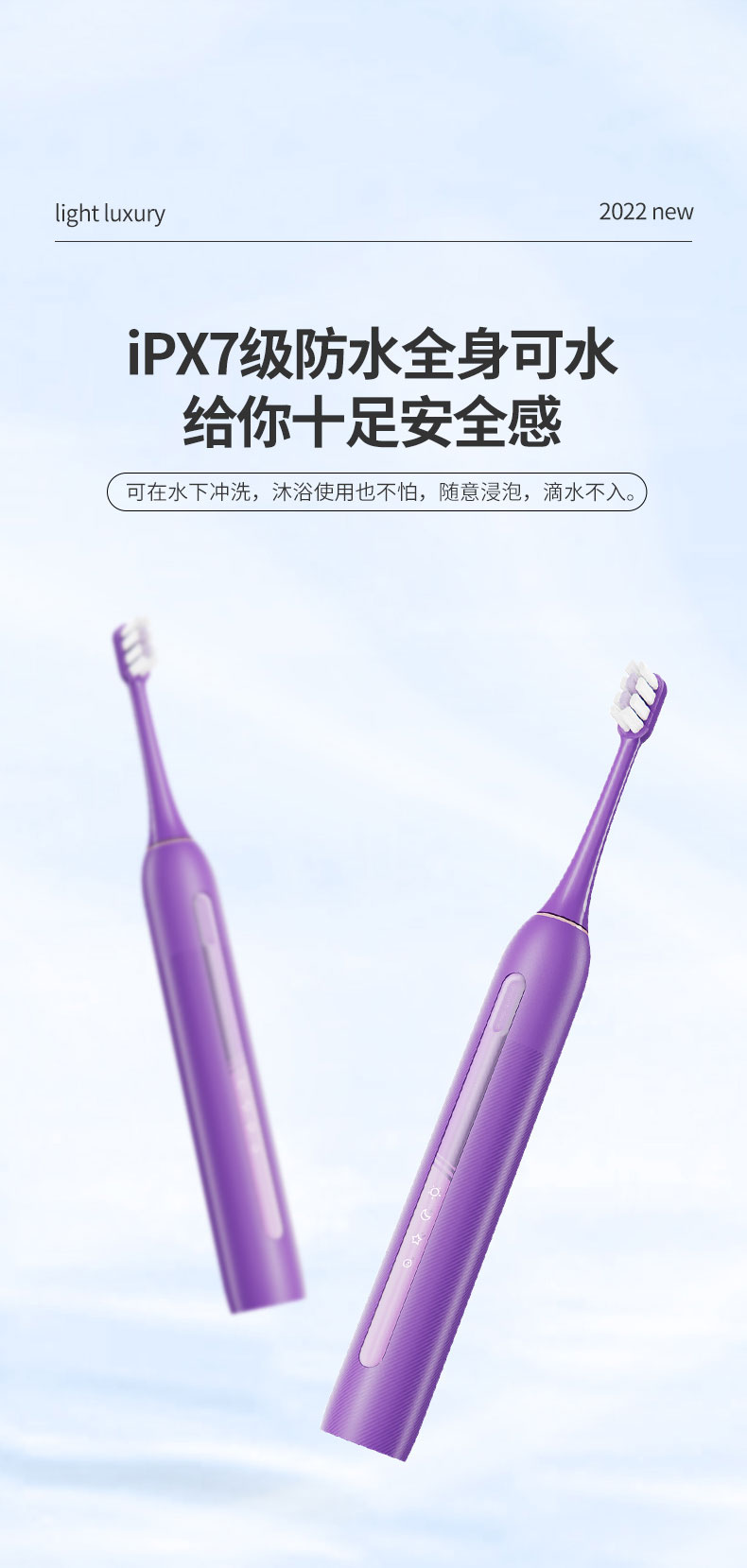 聲波口潔力新一代電動牙刷–刷博士【聲波感應智能電動牙刷】是一款新研發創新的感應式聲波電動牙刷,可實現“入口即開,離口即停”,告別按鍵的感應黑科技。這款【聲波感應電動牙刷】多種刷牙模式且每種模式下均有3檔力度調節,可滿足不同口腔需求;USB直充,方便易攜帶,出差旅行收納省心;iPX7級防水全身可水下沖洗,沐浴使用也不怕,隨意浸泡,也滴水不入,給你十足安全感!